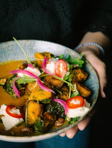 Le midi, une cuisine de saison, simple et sincère, pensée autour de produits bien sources.